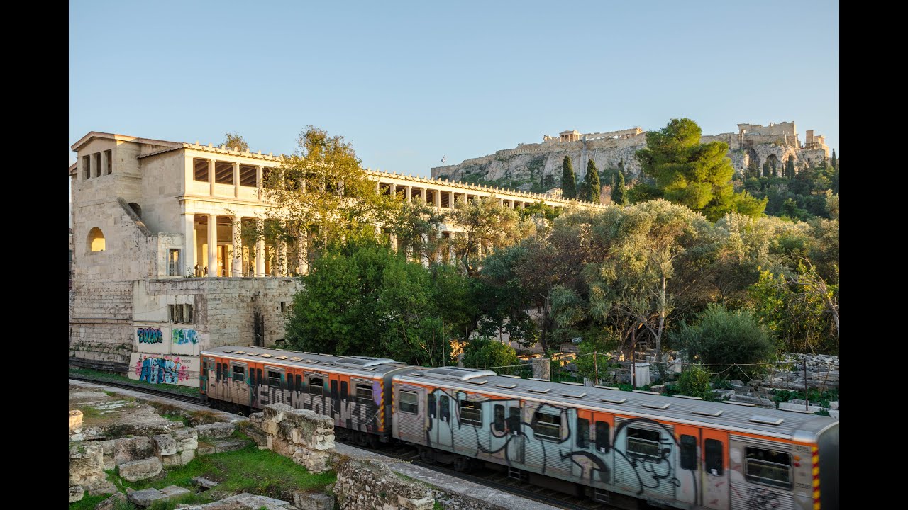 Athens Metro Passes Under Acropolis Near Thissio Station in Athens, Greece